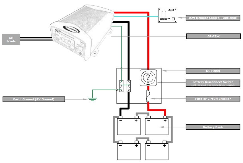 รูปที่ 3. แผนผังที่สมบูรณ์ของสายไฟและการต่อสายดินด้าน DC ของอินเวอร์เตอร์ (PE/กราวด์กราวด์)